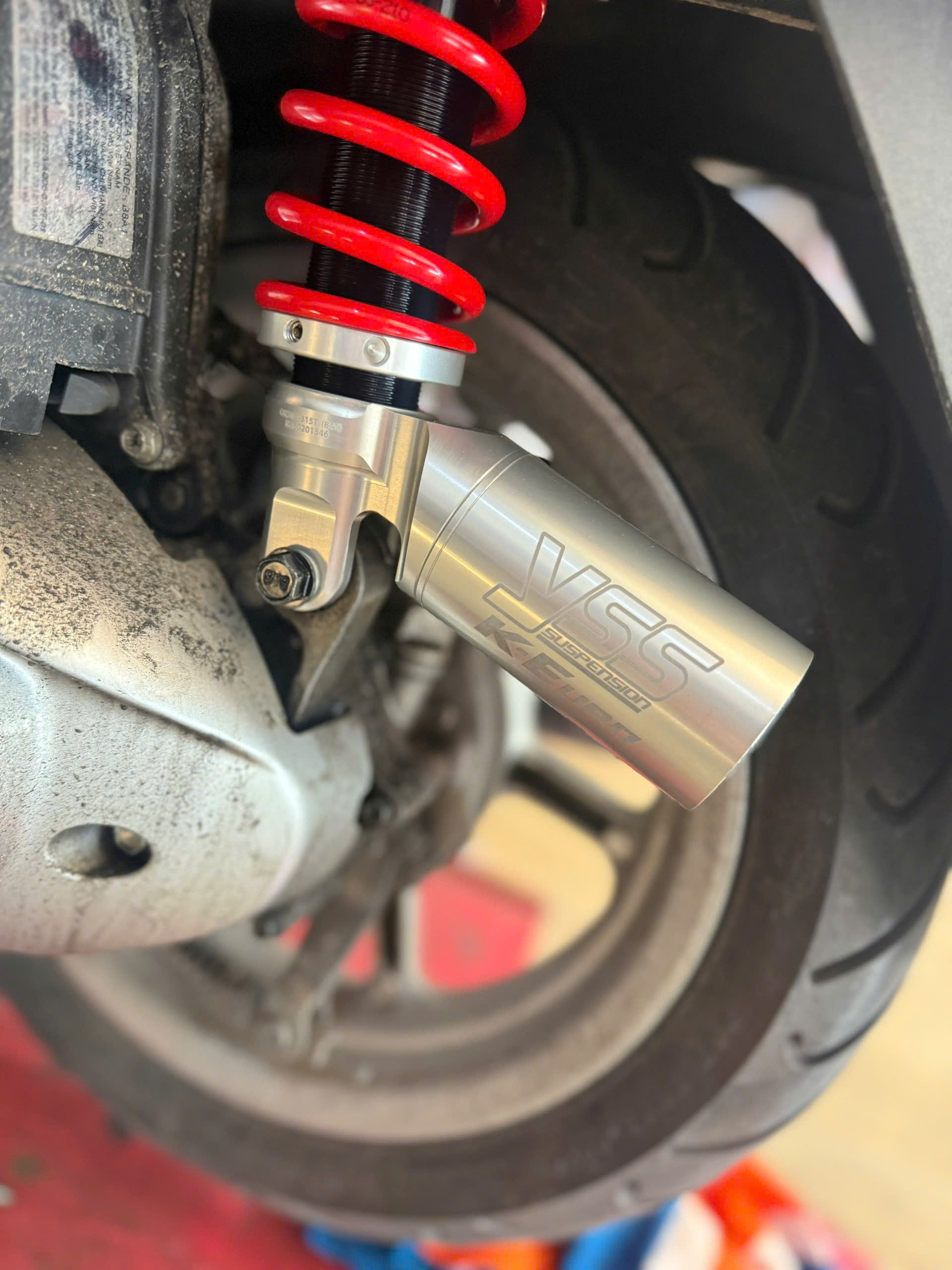 - Phuộc (giảm xóc) giúp xe êm hơn khi đi qua ổ gà hoặc đường xấu.